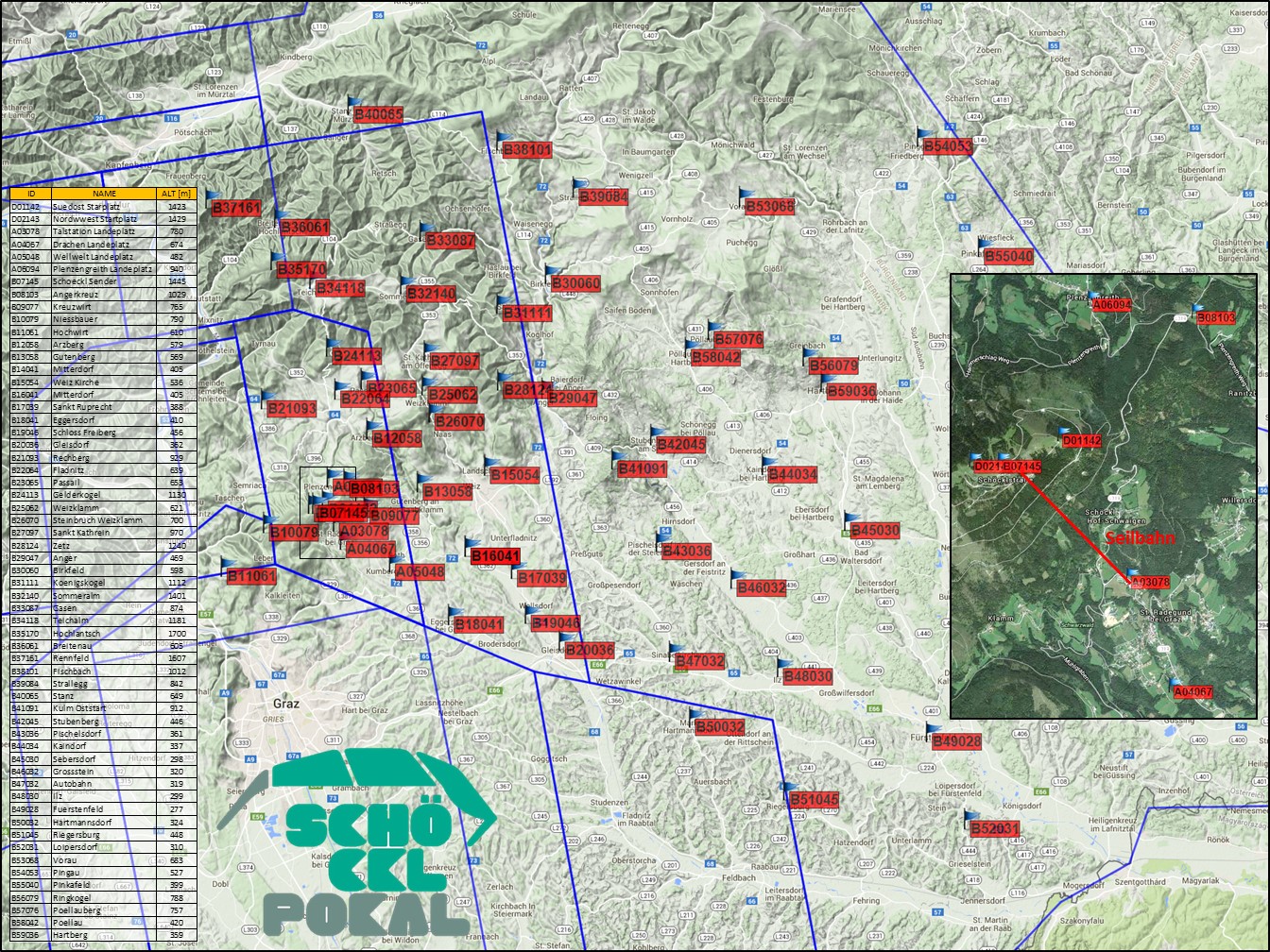 | 2 | D02143 | N47 11'54.0" | E15 27'40.0" | 1429 | Nordwest Startplatz |